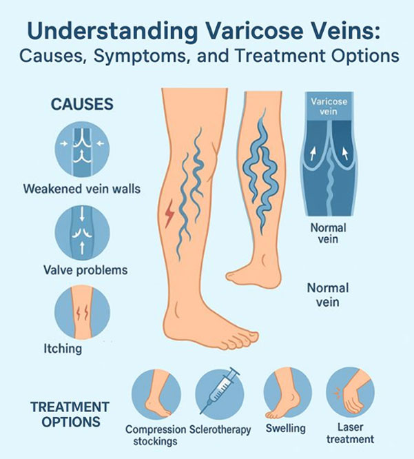 VARICOSE VEINS ARE A MAJOR CAUSE OF COSMETIC AND UGLY DISFIGUREMENT OF LEGS THESE DAYS. THESE ARE ENLARGED TWISTED BULGING VEINS USUALLY BLUE, PURPLE OR GREEN , THAT APPEAR JUST BELOW THE SKIN . THESE VEINS CAUSE aching, heaviness, swelling, itching, and nighttime cramps.